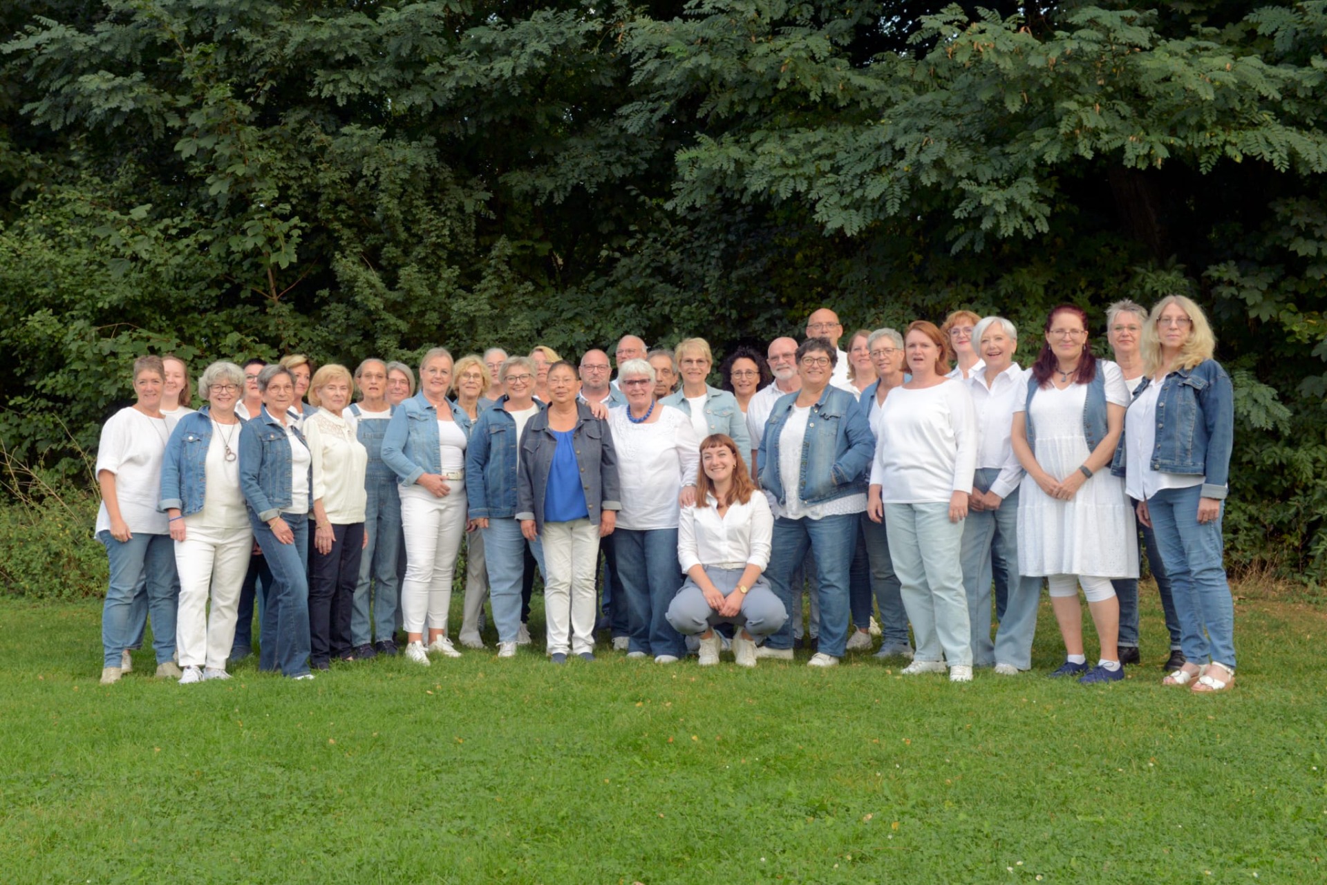 Onze dirigente Lea Lomans geeft op haar eigen, unieke wijze leiding aan het koor en de band.